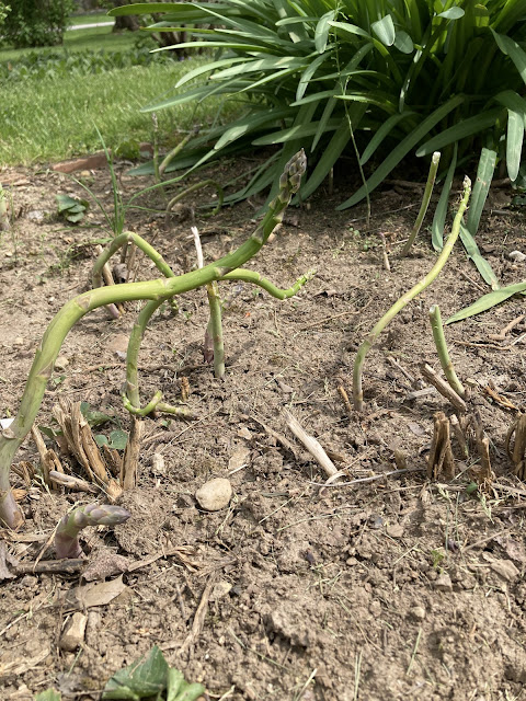 The lawn killer man got these. The hope is that the next bunch will be eatable. The deer were here last night but all was covered. A gardener always wins some and loses othersSupper was broccoli soup. Doug woke up enough to eat and then it was right back to the recliner with more snoozing. I spent a little time breaking up the artemisia soil I dug and then it was basketball time. Woo, woo. What a day. Tomorrow, Doug has a PT session for his shoulder. We'll see if he is awake to drive. One never knows.