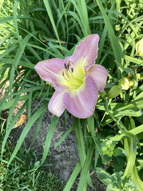 Another new very soft Lavendar Day Lilie on the morning walkWhile walking the garden, I always think about planting a few zinnia seedlings in the evening in a few places but when evening comes, I grow big welts from bites while outside that I don't even know I am getting at the time. I just end up itching. I really think the reality of moving zinnia plants or any plants when there is extreme heat either morning or evening, the outcome might not be so good. So, waiting for cooler times is the plan right now. Bugs, heat and a move aren't a great combination of events for anyone.